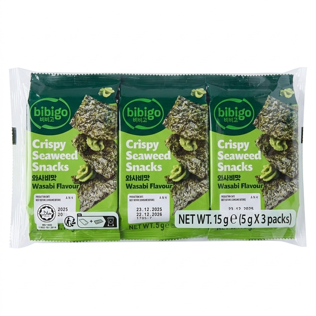 / Bibigo Crispy Seaweed Snacks Wasabi Flavour 15g (5g X 3)