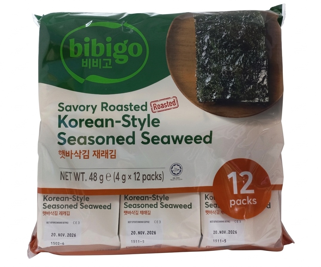 / Bibigo Korean Style Seasoned Seaweed Net WT.48g (4G X 12 Packs)